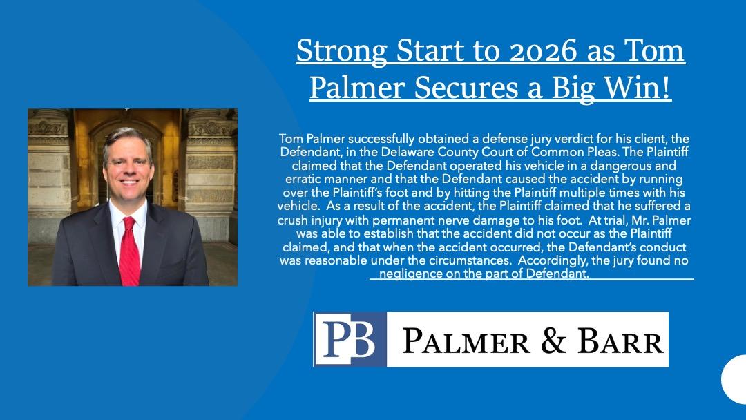 Palmer & Barr, P.C. offers a wide range of legal services in many jurisdictions at the state and federal levels. We focus in Pennsylvania in all of the surrounding Philadelphia counties as well as New Jersey.